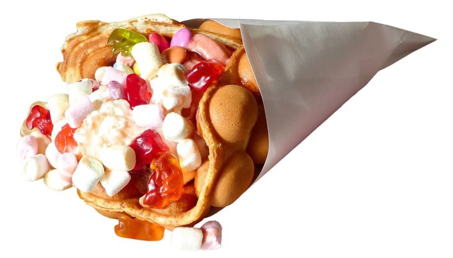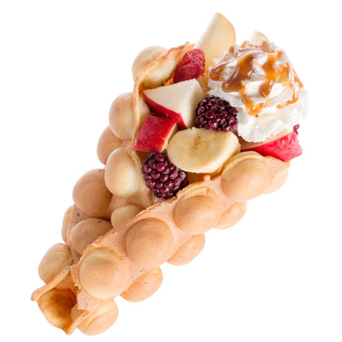 Posebna tekstura smjese za Bubble vafle koja omogućava idealan oblik vafla koji se može puniti sa sladoledom, voćem, te raznim posipima i preljevima.