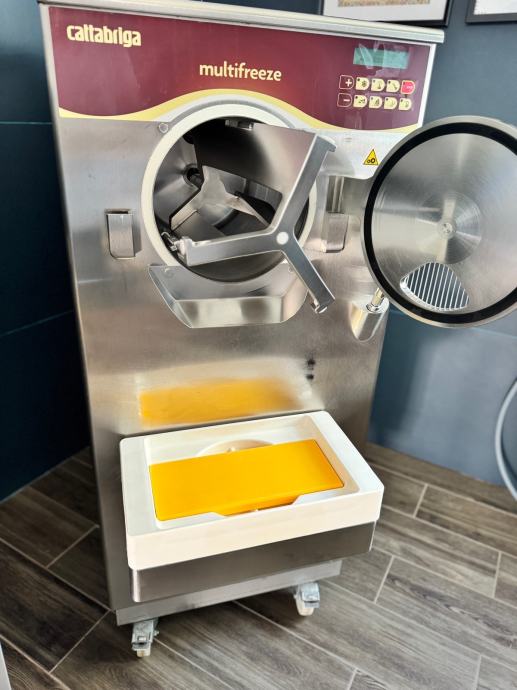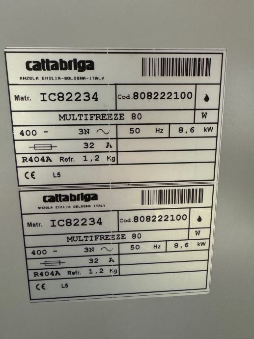 Revidirano s jamstvom. Multifreeze je Cattabrigin high-tech zamrzivač sladoleda. Sustav Multifreeze dozira snagu hlađenja prema vrsti i količini unesene smjese, optimizirajući vrijeme proizvodnje i smanjujući potrošnju električne energije i vode. Količina po ciklusu 1,5-12 litara Instalirana snaga 8,6 Kw. Cijena na upit