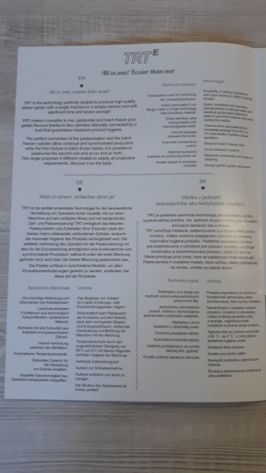 GELITA TRT 50 je savršen kombiniran stroj za jednostavnu proizvodnju visokokvalitetnog sladoleda koji štedi vrijeme, prostor i troškove. S njim možete miješati, pasterizirati i zamrzavati sladoled uz maksimalnu higijenu proizvoda zahvaljujući toplinskom šoku. TRT omogućuje najbolje sušenje sladoleda zahvaljujući visokokvalitetnim komponentama i dvobrzinskom motoru u kombinaciji sa snažnim Gelita sustavom hlađenja.