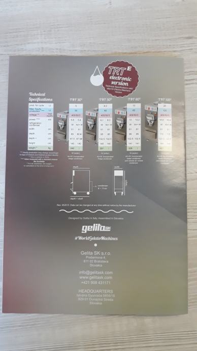 Gelita je kombinirani stroj s pasterizatorom i frizerom gdje u jednom stroju imate sveukupnu proizvodnju sladoleda. Prednost kombiniranih strojeva je što svaki okus može imati svoj posebni recept gdje možete prilagođavati razine šećera, vrhnja itd. čime imate mogućnost proizvodnje jedinstvenih i drugačijih sladoleda. Dodatna prednost je ta što se radi o zatvorenom sistemu gdje je nema rizika kontaminacije i stvaranja bakterija na svim rizičnim točkama. Navedeni stroj je proizveden 2017. godine te na sebi ima elektro-mehaničke komande za upravljanje.