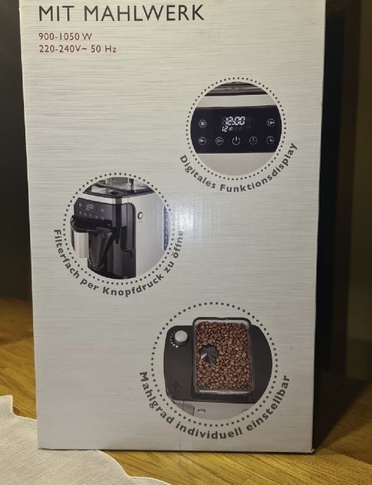 Prodajem nov,zapakiran,nekoriṣ̌ten aparat za kavu u zrnu sa ugraðenim mlinom za kavu. Plaćen 100€
