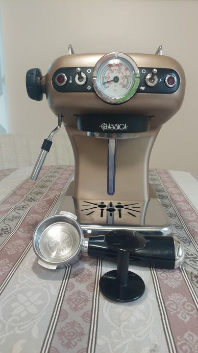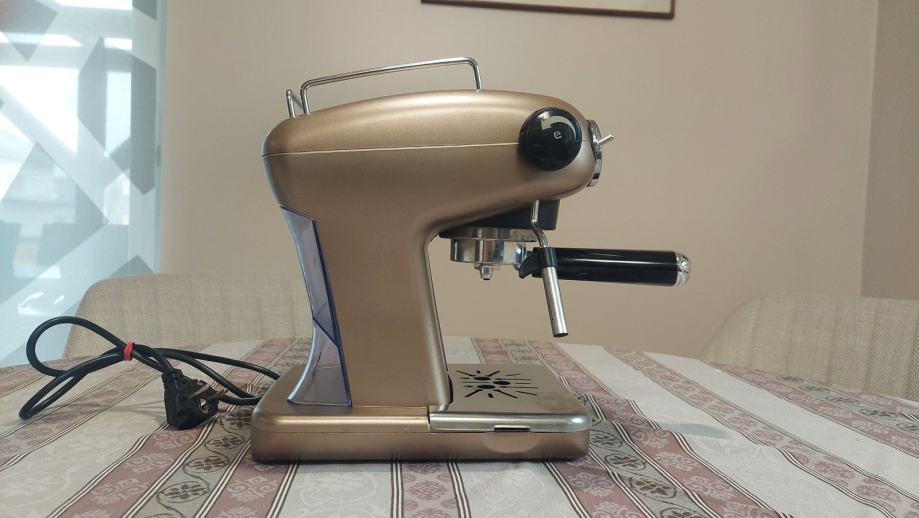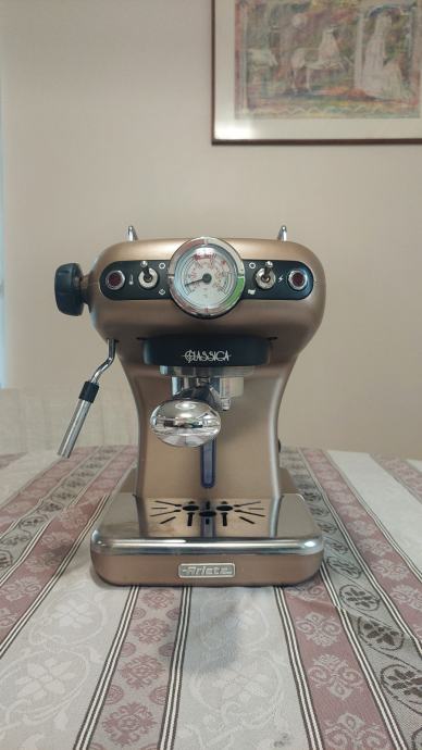 Aparat za espresso kavu Ariete Classic model 1389A. Ispravan i uščuvan. U aparat se stavlja mljevena espresso kava. Može kuhati jednu ili dvije kave istovremeno. Pjenjač za mlijeko za cappuccino ili macchiato.