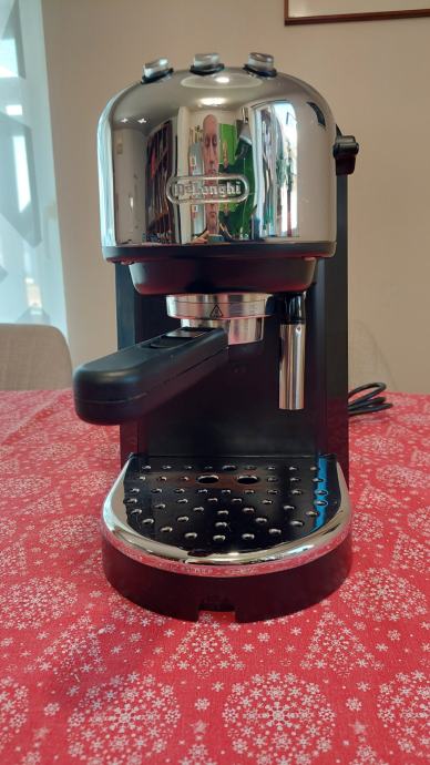 Aparat za espresso kavu DeLonghi EC 271.B. Potouno ispravan, uredan i čist, uščuvan, očišćen od kamenca. U aparat se stavlja mljevena espresso kava. Jednostavan za upotrebu. Pjenjač za mlijeko za cappuccino ili macchiato.