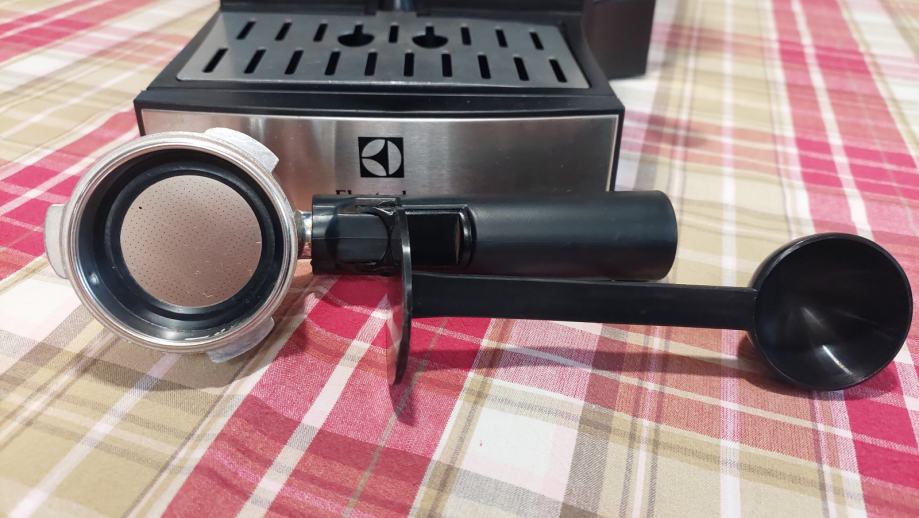 Aparat za espresso kavu Electrolux EEA 111. Potpuno ispravan. U aparat se stavlja mljevena espresso kava. Pjenjač za mlijeko za cappuccino i macchiato.