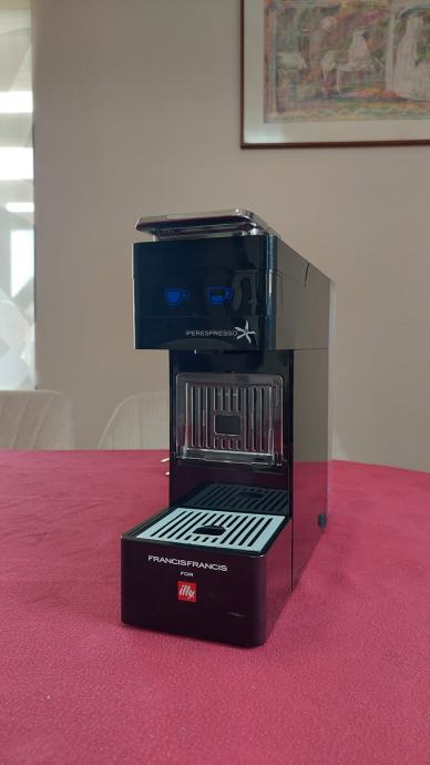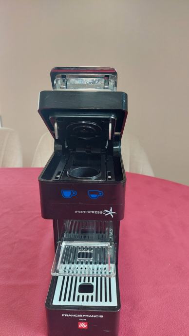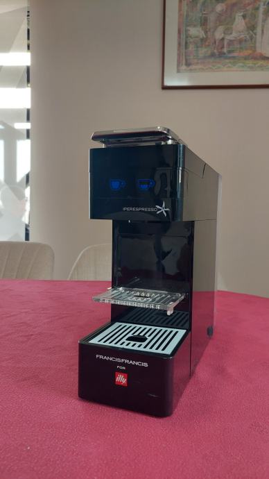 Aparat za espresso kavu Illy FrancisFrancis Y3A ipererespresso. Ispravan, uščuvan. U aparat se stavljaju Illy iperespresso kapsule. Automatski kuha dulju ili kraću kavu. Jednostavan za korištenje. Uput (pdf) uz aparat.
