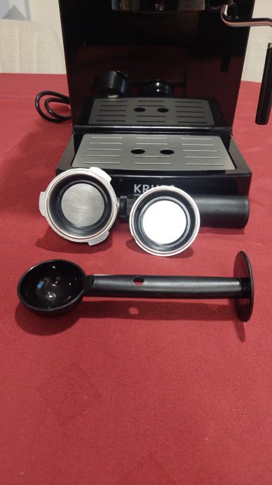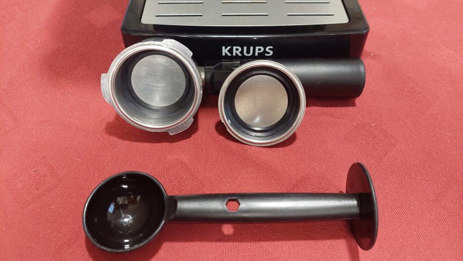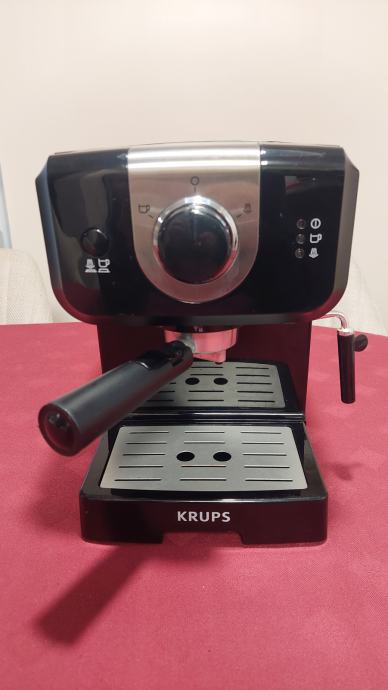 Aparat za espresso kavu Krups XP320. Potpuno ispravan, uščuvan. U aparat se stavlja mljevena espresso kava. Pjenjač za mlijeko za cappuccino ili macchiato. Jako jednostavan za upotrebu.