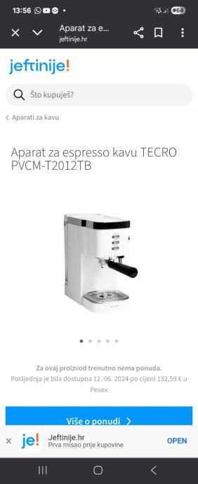 Prodajemo zbog preseljenja malo korišten aparat za kavu na vikendici.