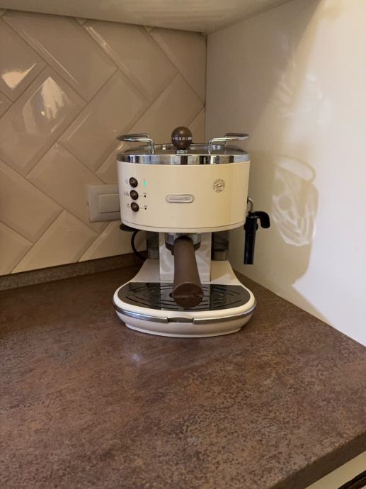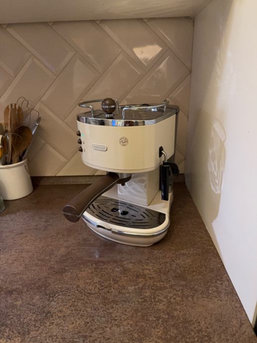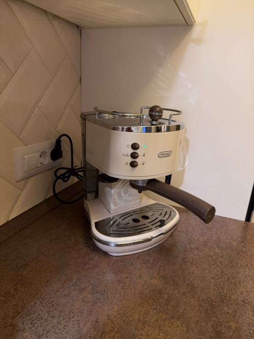 Prodajem rabljeni DeLonghi ECOV311.BG aparat za kavu u elegantnoj bež boji s detaljima od kromiranog metala. Ovaj stilski aparat za espresso ima praktične kontrole i čvrstu ručku za jednostavno korištenje. Savršen je za ljubitelje kvalitetne kave koji traže pouzdan aparat renomiranog proizvođača.