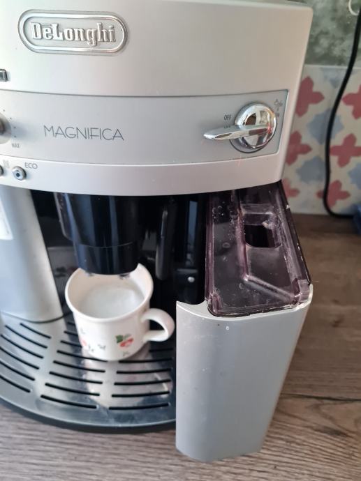 Prodaje se aparat za kavu Delonghi Magnifica. Odličan za pripremu vrućeg napitka kod kuće ili u uredu. Ima spremnik za vodu 1.8 l, te integrirani mlinac za mljevenje kave u zrnu, a prima i mljevenu kavu. Priprema espresso, obično kavu, cappuccino, a sve se može podesiti na željenu količinu. Ima podesivi slivnik kave za različite veličine šalica, automatsko isključivanje, indikator za prazan spremnik vode i kave.