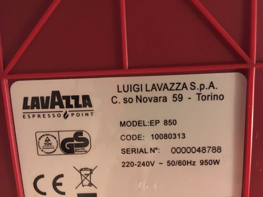 Lavazza Espresso Point 850 je polu automatski aparat moderanog dizajna. Odlike ovog aparata su jednostavnost uporabe te male dimenzije. Aparat ima mogućnost grijanja vode/mlijeka. Korišten jako malo, kao novi.