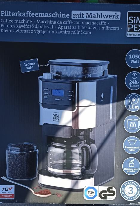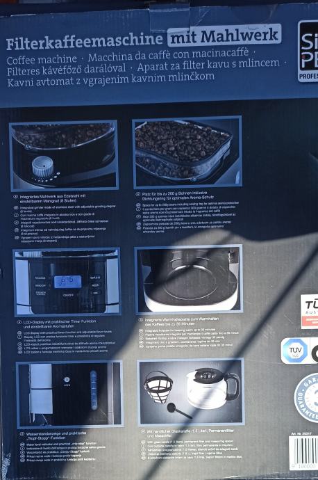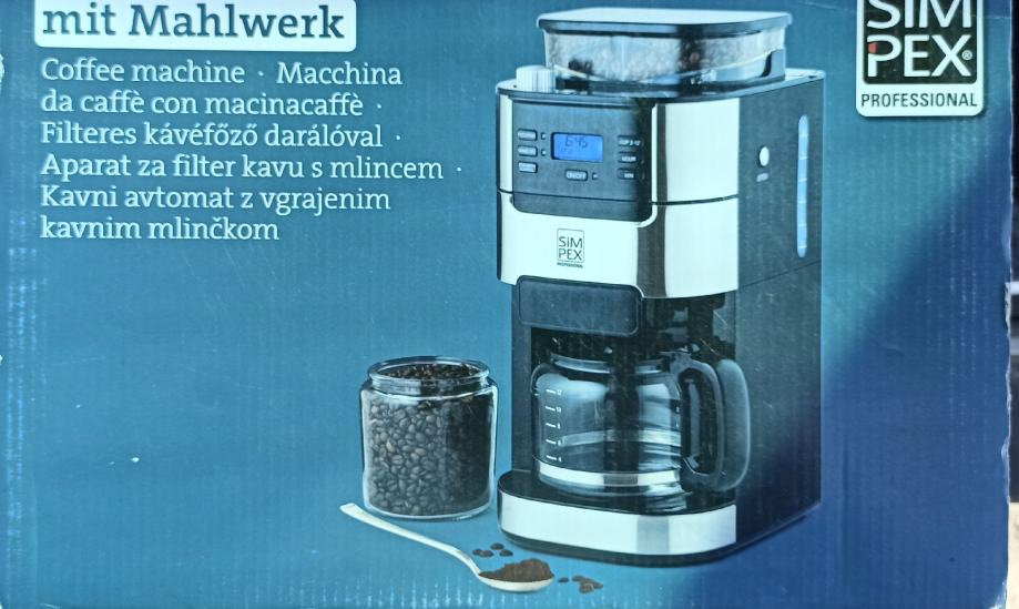 Aparat za kavu sa integriranim mlincem od inoxa za mljevenje kave.Lcd prikaz funkcija,timer,trajni filter,održavanje topline .Detaljne specifikacije na slikama.Novo,nekorišteno.Račun i garancija.