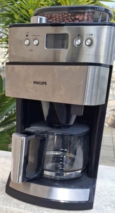 Prodajem Philips aparat za kavu s integriranim mlincem za kavu. Aparat je crno-srebrne boje, izrađen od nehrđajućeg čelika i plastike. Opremljen je staklenim vrčem za kavu te upravljačkim gumbima za podešavanje jakosti kave i ostalih postavki.