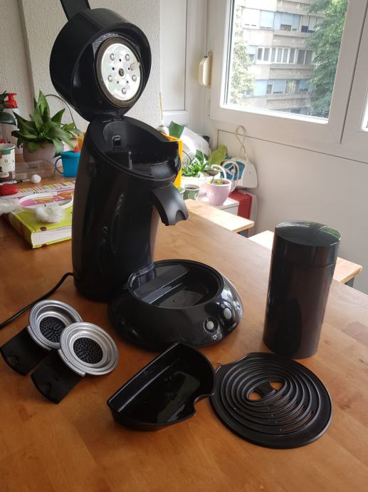 Prodajem aparat za kavu i posudicu za skladištenje filtera. Malo korišten. U potpunosti ispravan i sa svim djelovima. Puni jednu ili dvije šalice istovremeno, premaz od nehrađajućeg čelika, spremnik za vodu s indikatorom razine vode, automatsko isključivanje: 30 minuta, vrijeme pripreme jedne šalice kave 30sec, dvije 60sec. Za više vrsta kava senseo kava koje se mogu kupiti u Mullera (strong, mild, extra strong, classic, cappuccino i dr). Kave su ukusne i nisu skupe. U Senseo aparat je moguće staviti filtre i drugih proizvođača kava (također iz Mullera).
