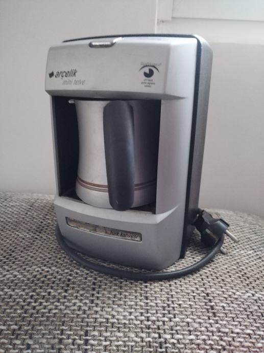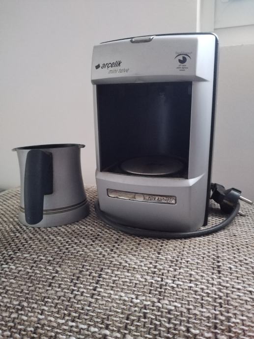 Original turski aparat za tursku kavu s talogom. U posudu/đezbu se ulije voda i mljevena kava, stisne botun i kada zavrije sam se ugasi, oglasi i zasvijetli. Ne može da pokipi. :-)