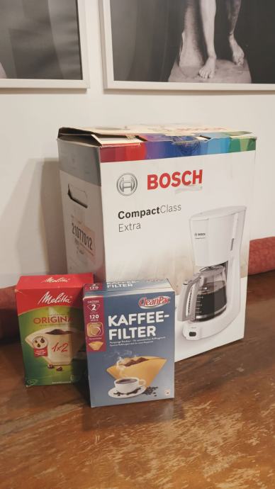 Dva puta korišten aparat za filter kavu, u super stanju, očišćen. Kupljen prije par godina. Uz njega bonus 2 pakiranja neiskorištenih filtera.