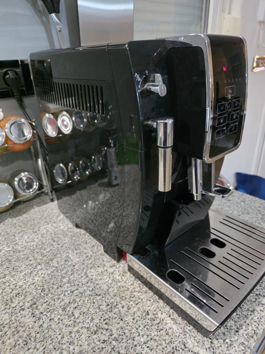Prodajem DeLonghi Dinamica automatski aparat za kavu, crne boje s elegantnkim detaljima. Aparat ima integrirani mljevač za zrna, digitalni zaslon s tipkovnicom za odabir programa kave, te mogućnost pripreme različitih vrsta kave. Ima ugrađenu pjenjačicu za mlijeko, a posuda za vodu je praktično smještena na stražnjoj strani. Aparat dolazi s posudom za kavu u zrnu i spremnicom za talog. Potpuno funkcionalan.