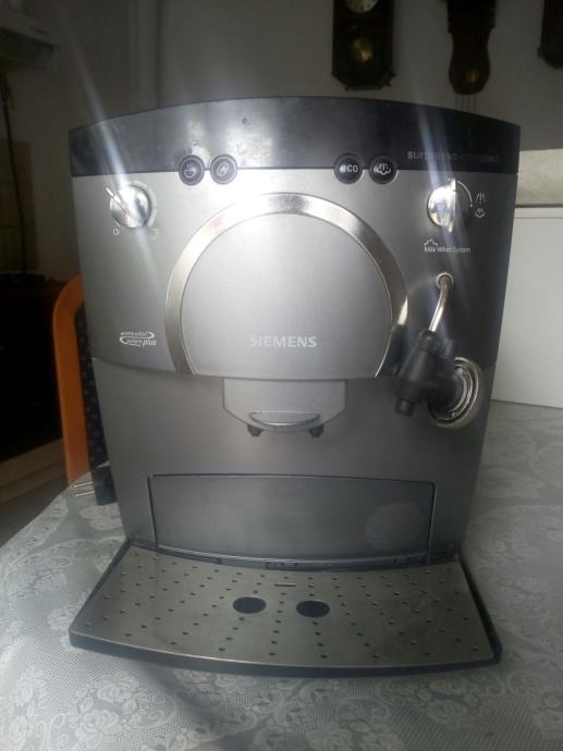 Kafe aparat Simens za expressu kavu ima Mlinac za svježe mljeveni kavu.paru za toplo mlijeko i kapucino i vrucu vodu za caj ali mora na servis jer pusta vodu u posudu za izbacivanje koriste ne kave ili za djelove cijena 300 kn