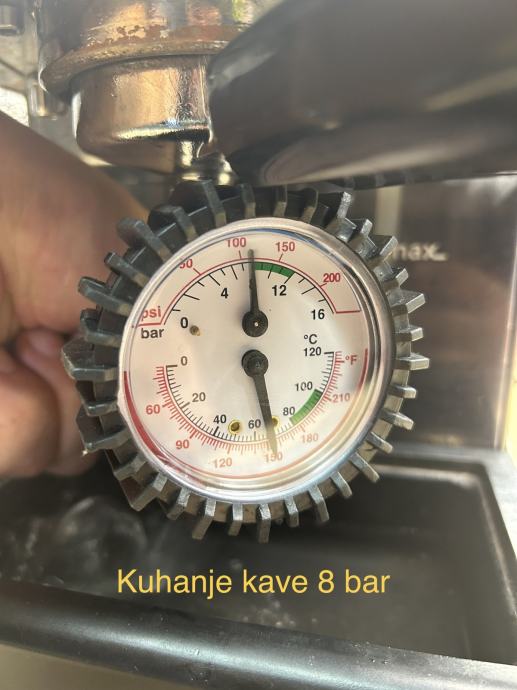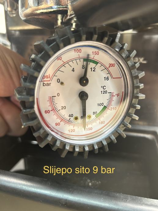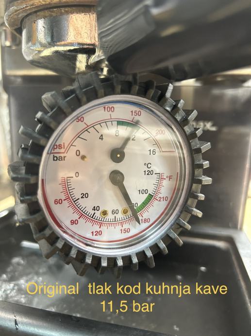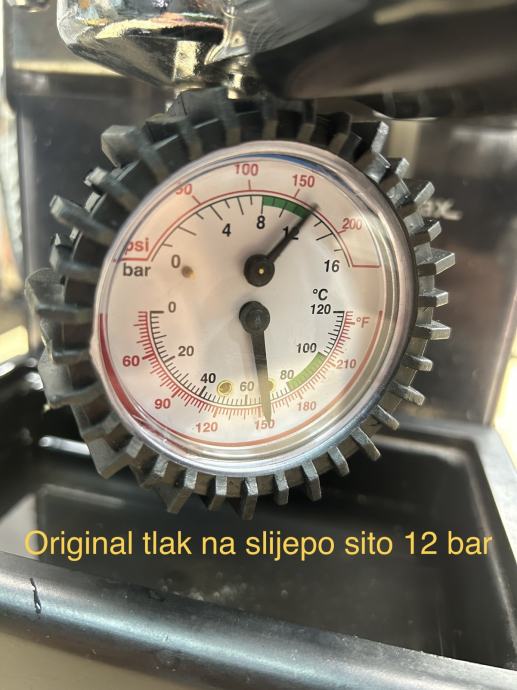 Nova opruga nudi na slijepo sito 9 bara, a kod kuhanja kave tj. kod laganog protoka kroz puck kave tlak pada na 8 bara.