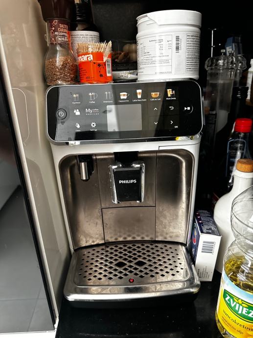 Prodajem rabljeni Philips aparat za kavu iz serije 5400. Radi se o automatskom espresso aparatu s intuitivnim zaslonom osjetljivim na dodir putem kojeg se može birati između različitih vrsta napitaka. Aparat ima ugrađeni mlinac za kavu te sustav za pripremu mliječne pjene. Srebrno-sive je boje.