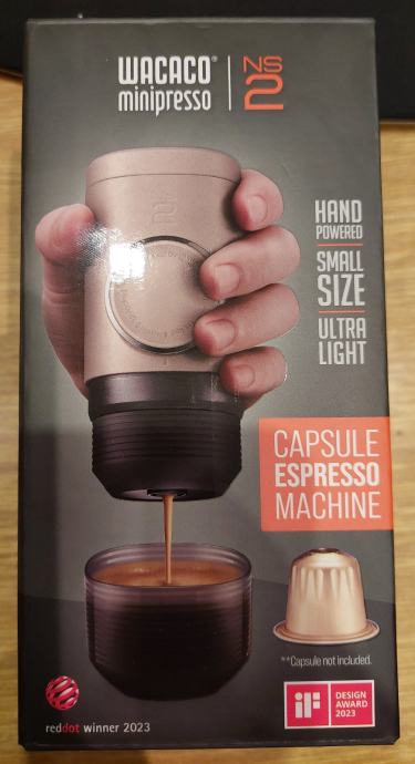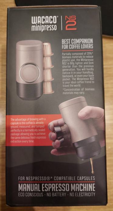 Prodajem potpuno novi prijenosni aparat za kavu Wacaco minipresso NS2, kompatibilan s Nespresso kapsulama.