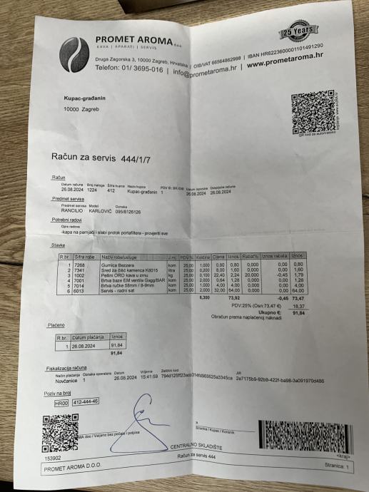 Prodajem Rancilio Silvia espresso aparat u dobrom i ispravnom stanju. Uređaj je nedavno servisiran – zamijenjene su britve i temeljito očišćen od kamenca. Sve radi kako treba.