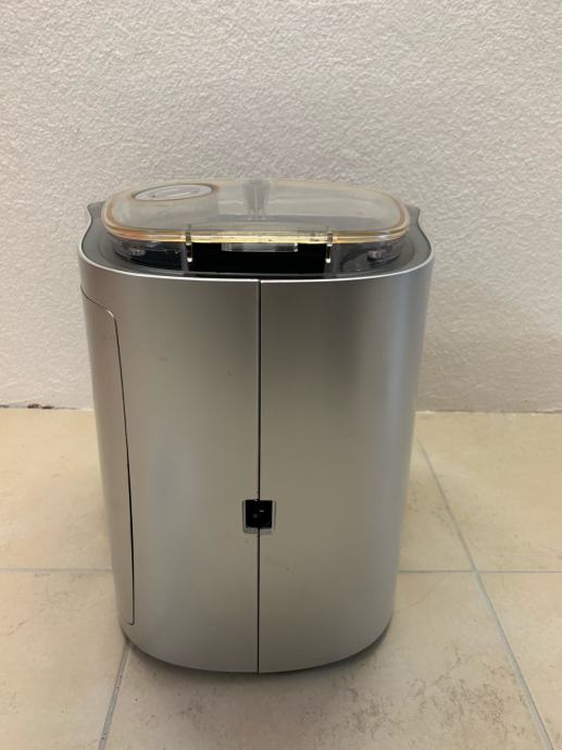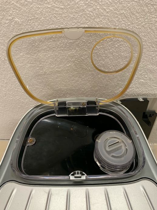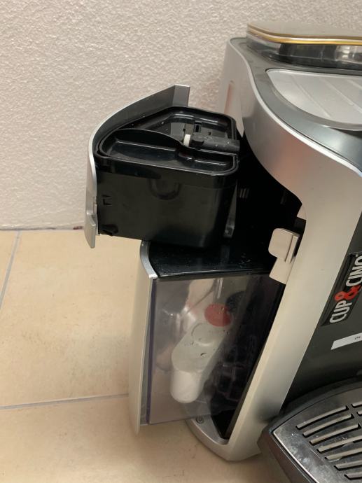 U uređaju je pretinac za svejže mlijeko i vodu sa lijeve strane a sa desne ostatci samljevene kave.