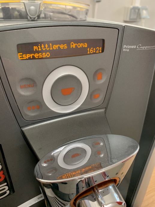 Uređaj sam javlja kad treba izbaciti ostatke kave odnosno dosuti novu kavu, vodu i mlijeko .