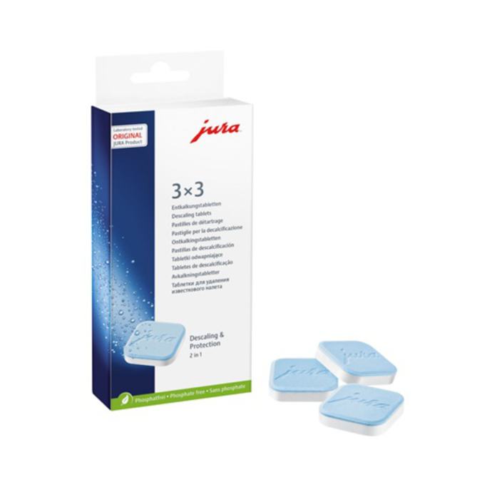 Kako bi produžili vijek trajanja vašeg potpuno automatskog aparata za kavu, JURA je razvila tabletu za uklanjanje kamenca u 2 faze koja nježno uklanja kamenac i istovremeno štiti vaš potpuno automatski aparat.