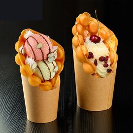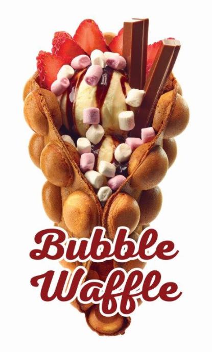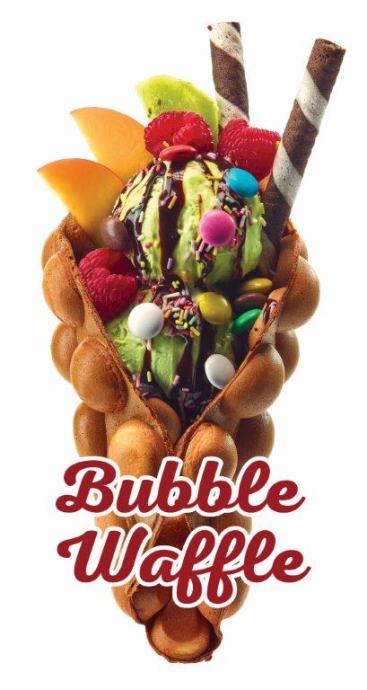BUBBLE WAFFLE - Primamljiv slatki užitak sa bezbroj mogućnosti serviranja (u slastičarnicama, restoranima, fast food objektima, koncept street-food „waffle to go”...) poslužuju se sa sladoledom, voćem, preljevima, slatkim dodacima. Mogu se poslužiti i slani vafli sa šunkom, sirom, pršutom, jajima, povrćem, umacima... Dajte mašti na volju!