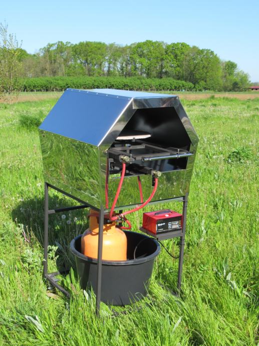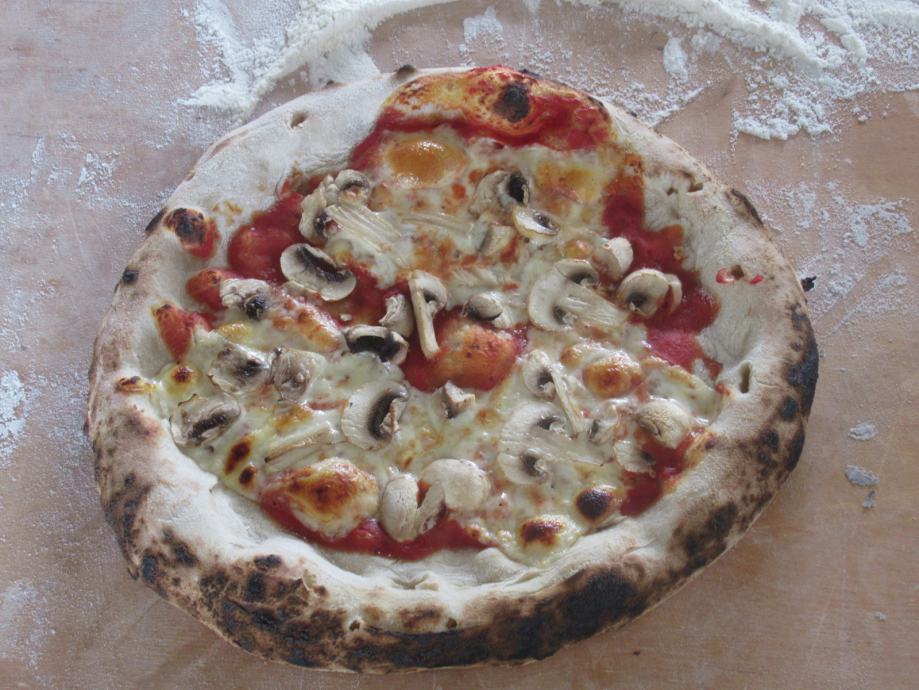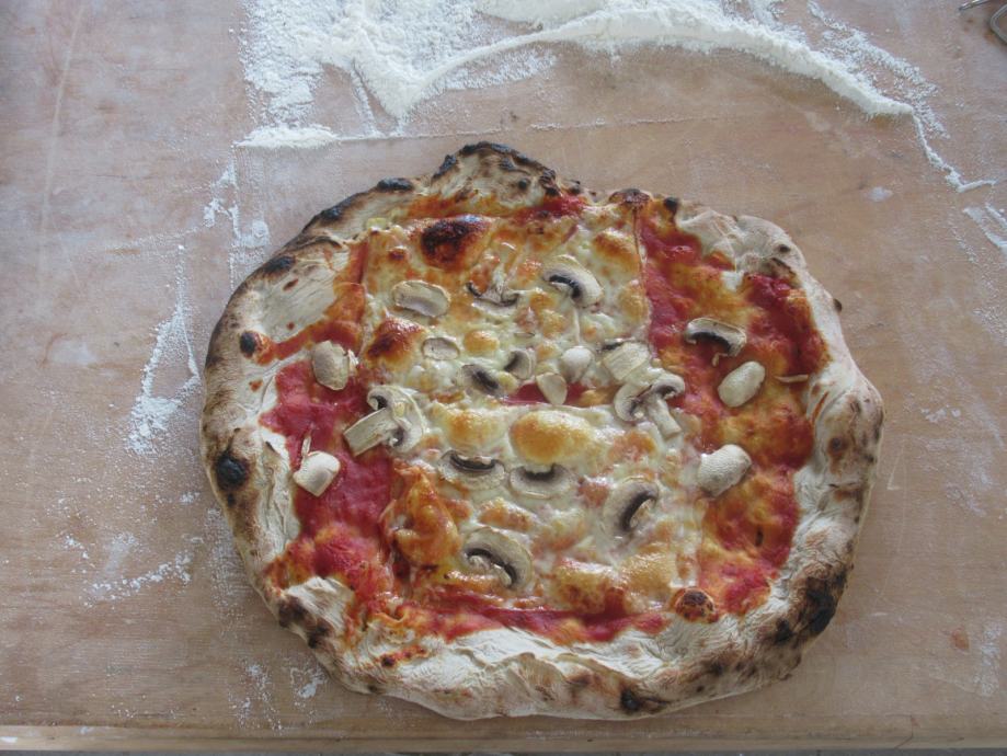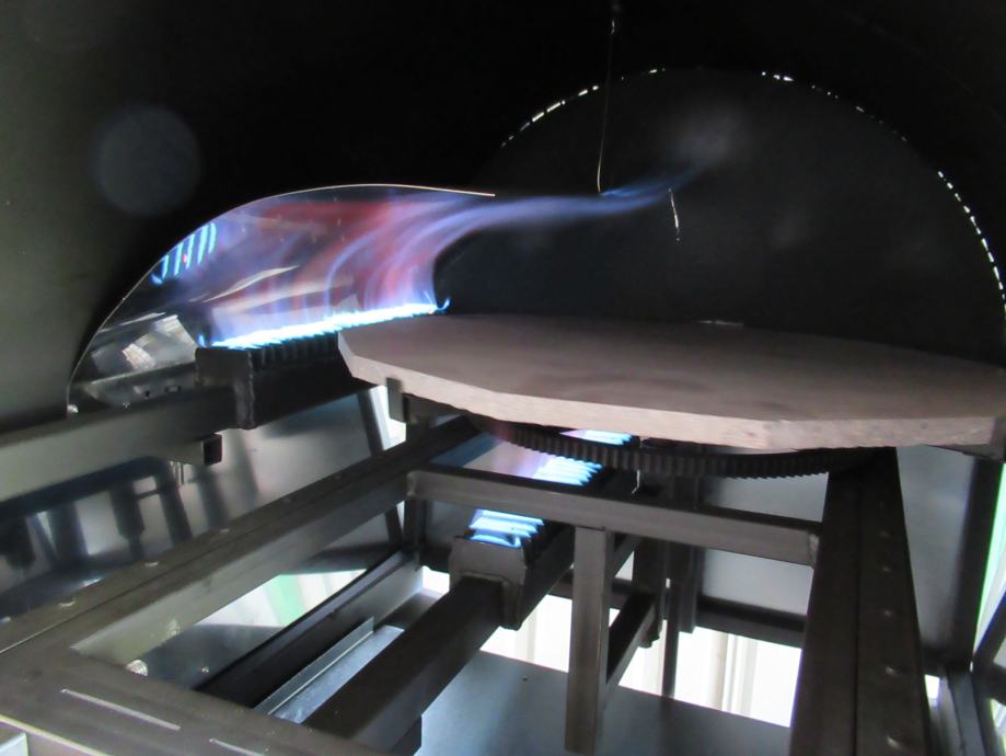 Vrtna peć za pizzu, plinska , pravilan raspored temperature, šamotna ploča rotira Zbog plamenika snage 30 kW od starta do 350 C na šamotu potrebno je samo 6-7 minuta .Pizza će biti pečena čak i ako niste u stanju razvući tanko tijesto .Na vama je da pizzu postavite točno na sredinu što je vrlo lako uraditi kada se izvuče šamot izvan peći
