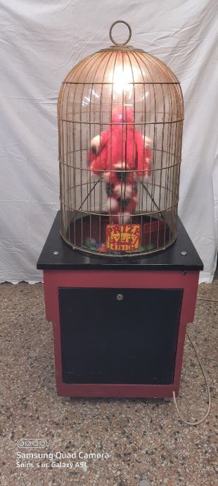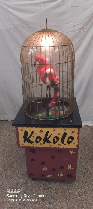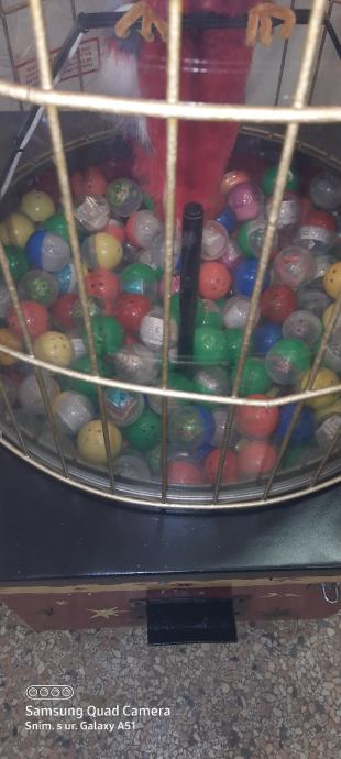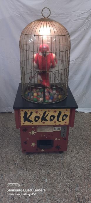Prodajem automat za kuglice sa poklonima namjenjen mališanima u obliku papige koja govori. Automat nakon ubaćene kovanice od 1€ priča svoju priču i nakon toga izbaci kuglicu.Djeca su oduševljena sa papigom koja govori!