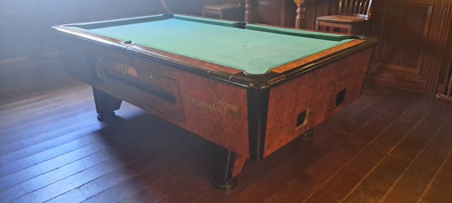 Dva biljara leonhard u radu i odličnom stanju. Biljari rade na kovanice od 1€, a mogu i bez naplate. Cijena sa lampama i svom opremom je 1700€ po komadu. Mogućnost dostave u vaš prostor i postavljanje aparata uz dogovor. 098 415 985