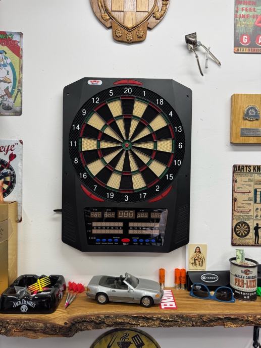 Pikado meta ima LED zaslon za 4 igrača za maksimalno 8 igrača ukupno.