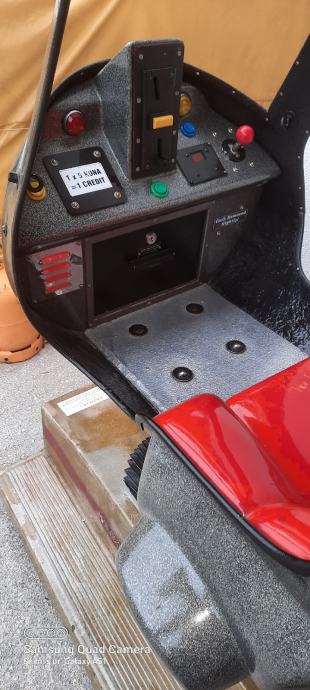 Pokreče se sa kovanicom od 5 kuna.Ima tajmer za podešavanje vremena vožnje. Nedostaje mu kutija sa koja simulira zvuk i svjetla istog.