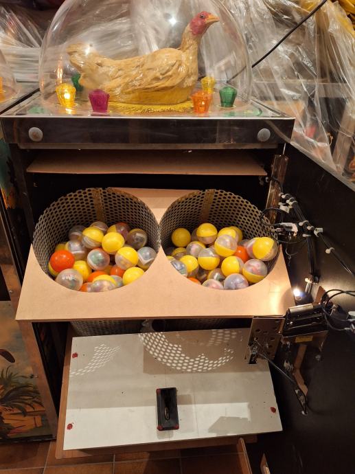 Nakon ubačene kovanice od 1€ čuje se kokodakanje i kad se pritiskom na označeni botun (dječak ili djevojčica)