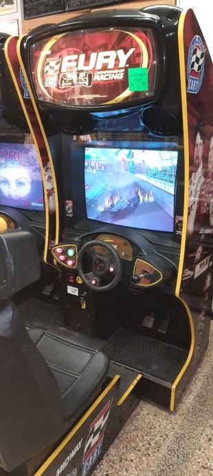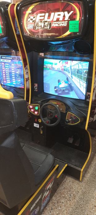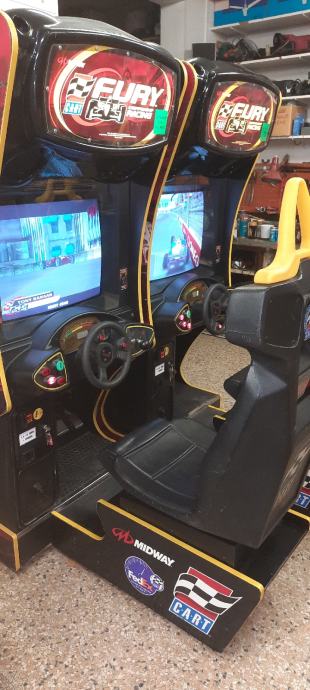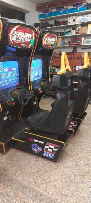 " FURY " proizvod Midway, je svijetu jedan od priznatijih simulatora po svojoj izvrsnoj simulaciji, grafikom i audio sustavom prepun adrenalina pruža vjerno sudjelovanje u svim okolnostima vozaču kao u stvarnosti na pisti uživo! Radi na kovanice od 2 €.