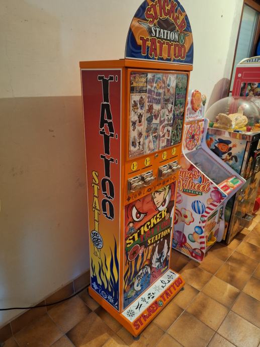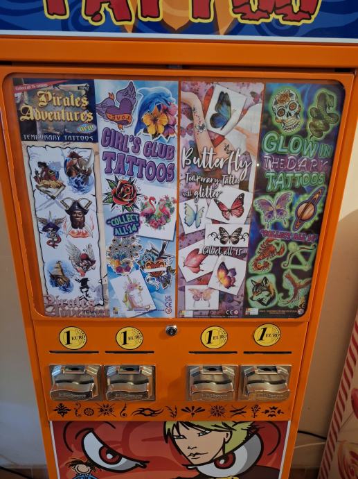 STATION TATTOO STIKER automat za prodaju dječijih tetovaža. Radi na kovanice od 1 €