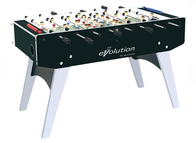 F 20 Evolution stolni nogomet idealna je kombinacija cijene i kvalitete. Stol je opremljen sklopivim nogama kako bi se dao naglasak na uštedi prostora te radi lakoće spremanja stola. Igrači su pričvršćeni na prolazne šipke od punog željeza promjera 13mm. Sami igrači nisu jednobojni već su obojeni kako bi što bolje prikazivali prave igrače. Uglovi igrače ploče napravljeni su pod nagibom kako lopta nebi zapela u kutu. Sa stolom također dolaze i kubični brojači rezultata za lakše praćenje igre.