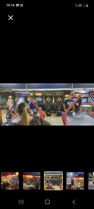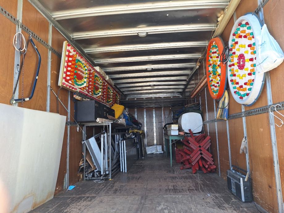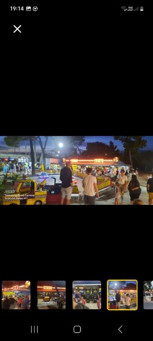 Mobilna zabavna radnja 8x15 sa glavnom trofaznom priljučnom kutijom koja se razvodi po prostoru u u tri manje kutije sa osiguračima, svaka faza posebno a iz njih ide puno priključaka tako da je cijeli prostor pun priključaka za automate.Sve je osvjetljeno sa neonskom rasvjetom. Na krovu je debela kamionska cerada plus bočnih zaštita za veča nevrjemena. Sa prednje strane ima po cijeloj dužini svjetleču reklamu sa bezbroj konbinacija. Cijeli prostor ima mogučnost prilagođavanja terenu, kvalitetno je izrađen i brzo se montira. Uz zabavnu radnju moguče je kupiti i kamion ( Renault Midium furgon dužine 7m ispravan momentalno neregistriran koji je inače služio za prijevoz i skladištenje večeg broja automat za zabavu kao i same radnje. Za sve pojedinosti nazovite , 098 264 373