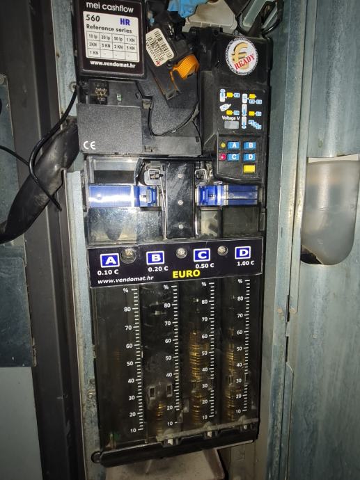 Žetonjera je ispravna i isprogramirana na euro. Tube su 0.10 €, 0.20 €, 0.50 € i 1 € a prima i 2 € ! Kabel na žetonjeri je za MDB !