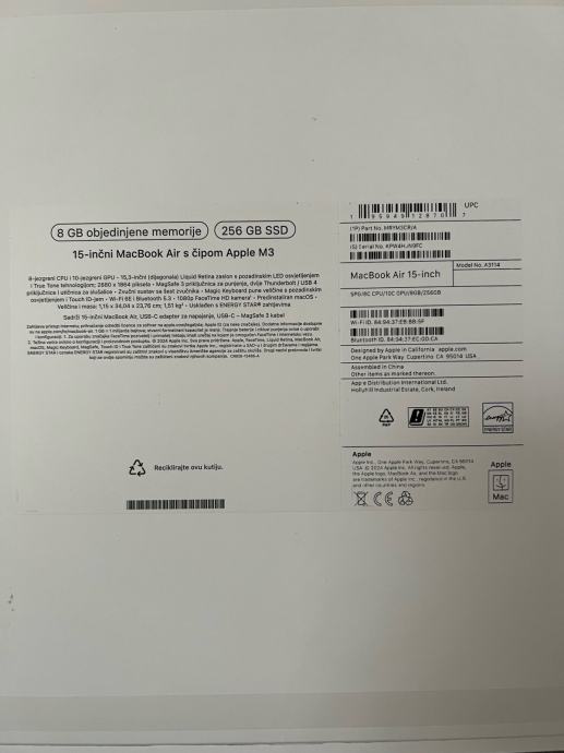 15-inčni MacBook Air s čipom Apple M3 (8G / 256 GB SSD)