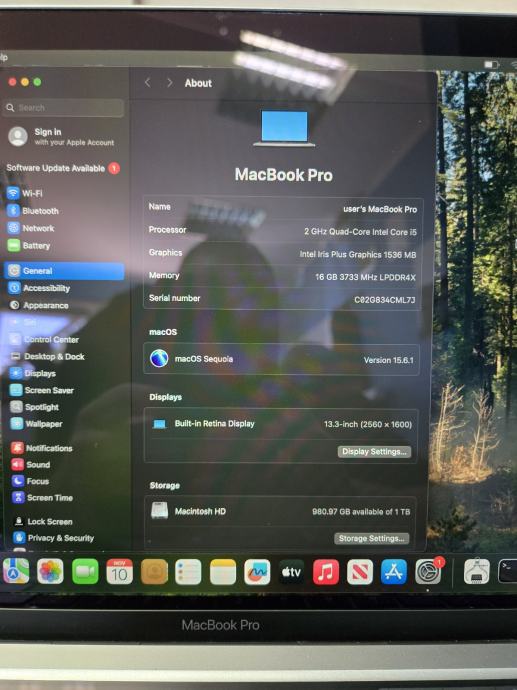 MacBook Pro 13" 2020 , i5 , 1 TB SSD , 16GB RAM, Touch Bar , 165 cycle