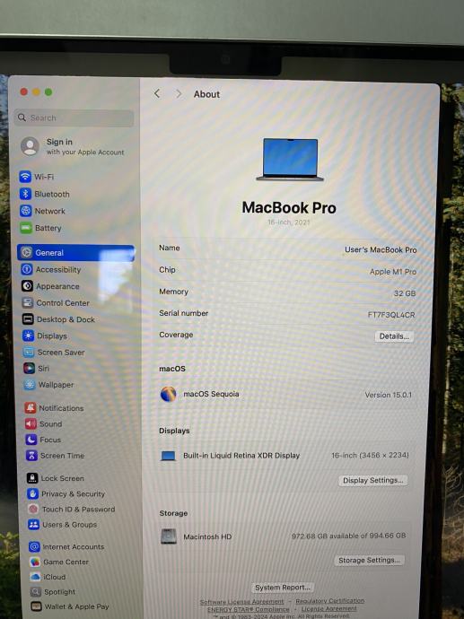 MacBook Pro 16" 2021 , M1 Pro , 1TB SSD , 32GB RAM, Račun + Jamstvo...
