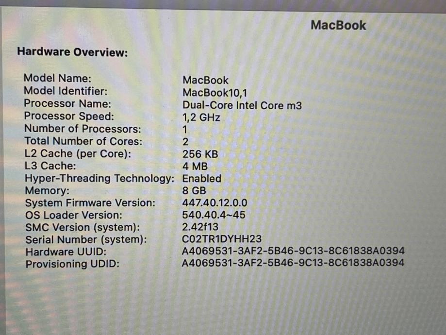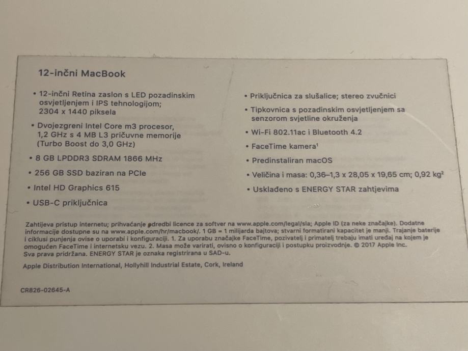 MacBook "Core m3" 1.2 12" (Mid-2017)