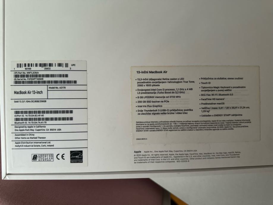 Prodajem ispravni potpuno i očuvan Apple MacBook 13inch zlatni 2020. 8 GB ram i 256GB memorije. Original pakiranje, punjač u kutiji.