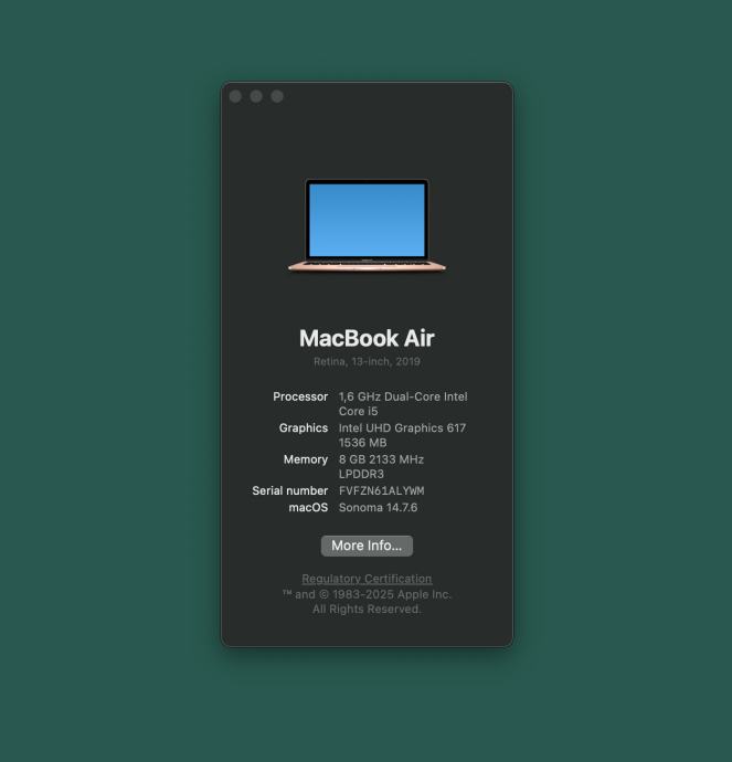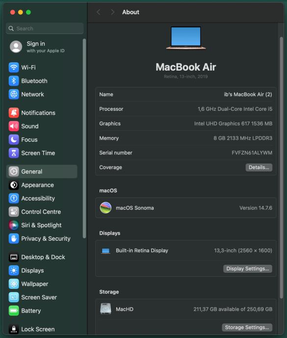 Operativni sustav: Instaliran macOS Sonoma 14.7.6