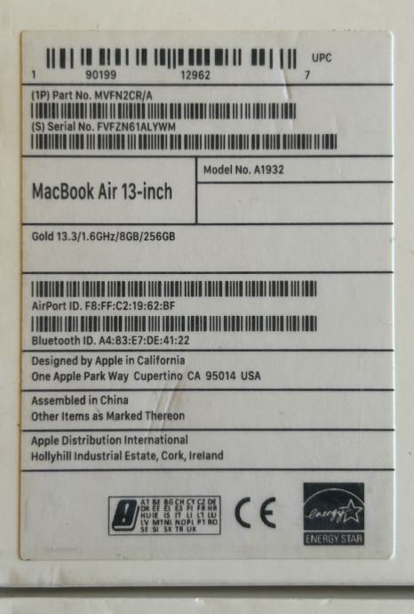 Model: MacBookAir8,2 (A1932)