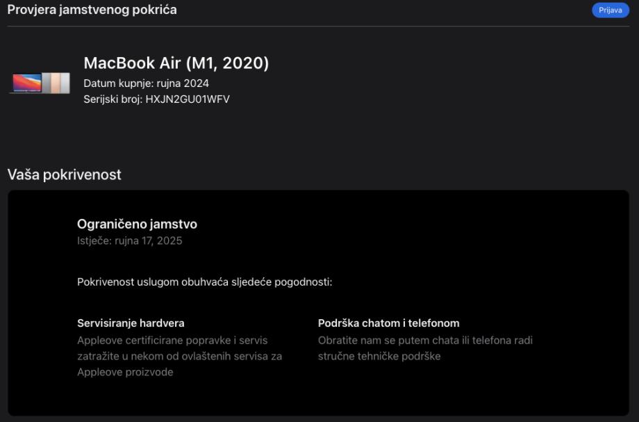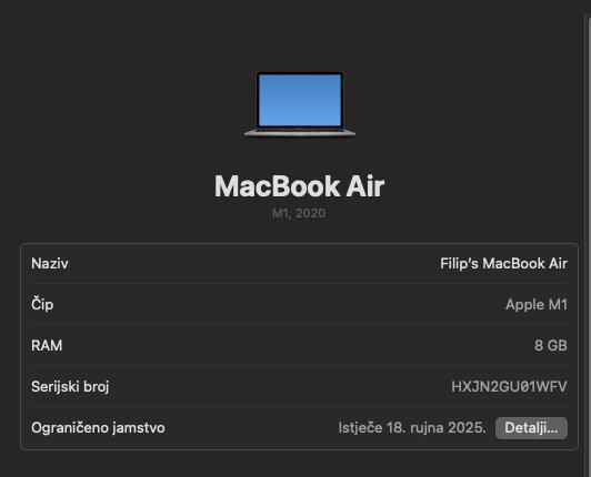 Prodajem MacBook Air M1 kupljen u rujnu 2024. godine u Hrvatskom Telekomu, još uvijek pod garancijom. Laptop je vrlo malo korišten, u savršenom stanju bez ikakvih ogrebotina, a baterija je očuvana i ima minimalan broj ciklusa punjenja.