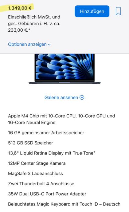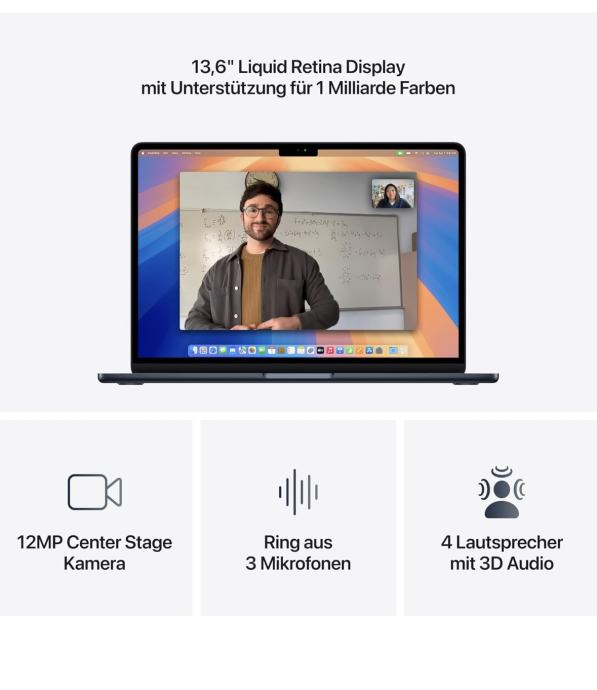 Apple MacBook Air (13 inch, Apple M4 Chip with 10-Core CPU and 10-Core GPU, 16GB Shared Memory, 512GB) - Midnight blue