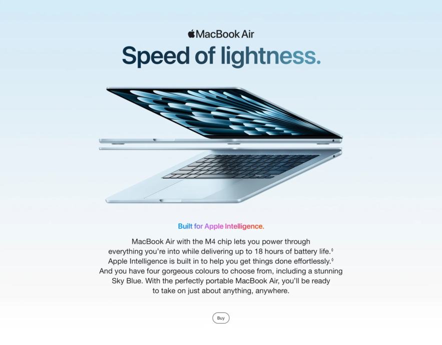 Nevjerojatno lagan i samo oko jedan centimetar tanak, MacBook Air lako se prilagođava tvom dinamičnom životnom stilu – i u torbi ga gotovo da i ne osjetiš. MacBook Air s čipom M4 ima više od 50 posto recikliranih materijala i izdržljiv kućište od recikliranog aluminija.